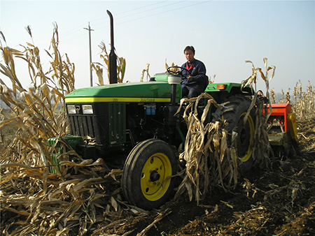 該機可以再也米稈直立地、秸稈還田地、小麥高茬浮稈地、深翻地等不同前茬條件下,一次性完成滅茬稈、開溝、播種、施肥、覆土、鎮(zhèn)壓等多道工藝。配置指甲式的玉米精量排種器與勺式的相比在同一質量下由每小時前進5km提高到8km。底盤采用變速旋耕機,可根據(jù)拖拉機不通的前進速度和當?shù)氐霓r藝要求、土質差別,靈活變換三種刀軸轉速,徹底解決了拖拉機跑的快效果差,跑的慢了效益差的問題。