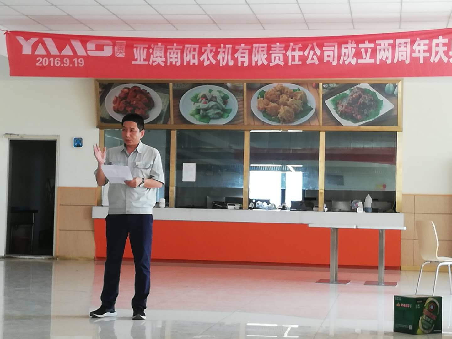 中秋佳節(jié)至,周年慶歡喜。2018923日,亞澳南陽農(nóng)機有限責任公司開業(yè)兩周年慶典暨歡度中秋佳節(jié)活動在公司餐廳隆重舉行,因當天有生產(chǎn)任務,在不耽誤生產(chǎn)及各部門班組的全力配合下,慶典活動在中午12:00順利開始。