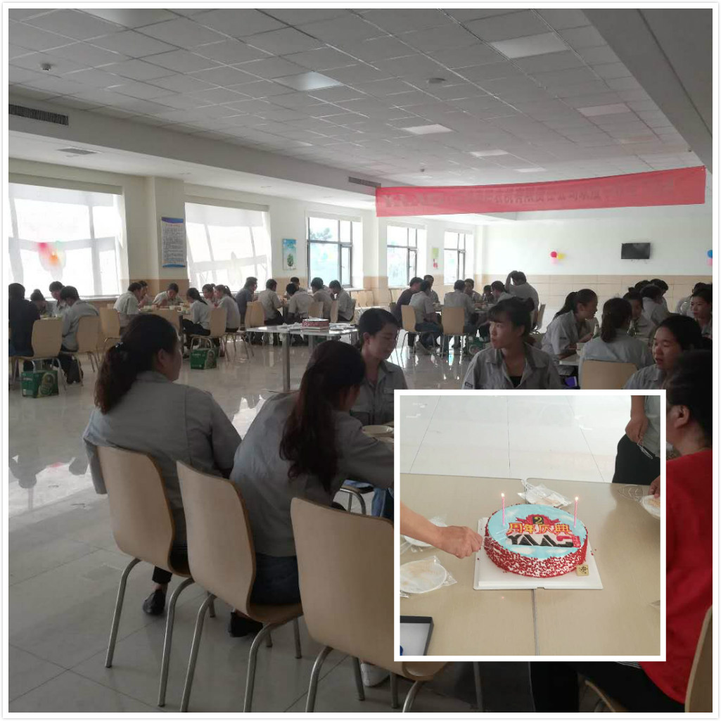 隨后,總經(jīng)理攜同公司主管共同切蛋糕。最后在工會主席耿莉莉的宣布下,集聚開始。