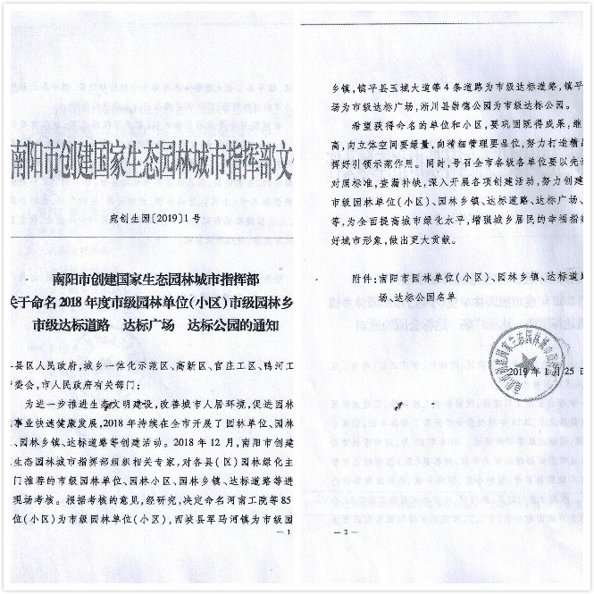 亞澳農(nóng)機(jī)喜獲南陽市園林單位